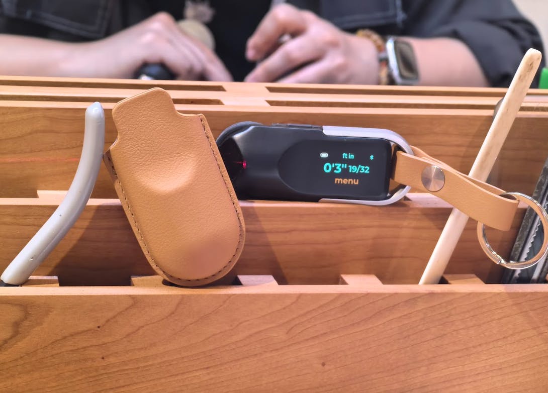 特に、NeoRuler GO を屋外で使用する機会が多い人には、レザーケースとストラップの組み合わせがおすすめです。バッグやベルトに簡単に取り付けられるため、いつでもすぐに取り出せる快適さを実現します。現場作業やスケッチ、打ち合わせなど、さまざまなシーンで即座に使える利便性が魅力です。さらに、外出先でも道具を紛失したり傷つけたりするリスクを大幅に減らせる点も安心です。