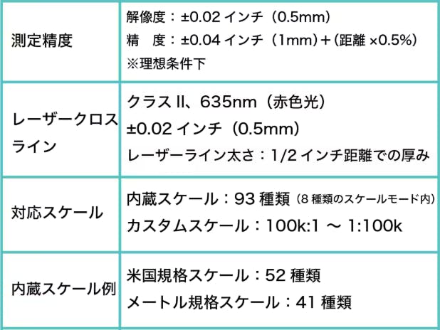 後半スペックを見るだけでも、NeoRuler GOがただのデジタル定規ではなく、現場の仕事を支える総合ツールであることがよくわかります。高精度の測定、レーザーによる基準線、豊富なスケール、アプリによるデータ管理。これらが組み合わさることで、専門職が求める精度と効率を同時に実現します。現場の負担を減らし、作業の質を引き上げるためのパートナーとして、NeoRuler GOは確かな存在感を発揮します。