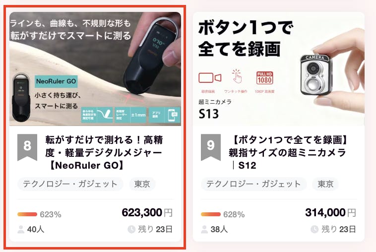 また本日のCampfireランキングテクノロジー· ガジェット部門で 8 位に入賞することが出来ました!