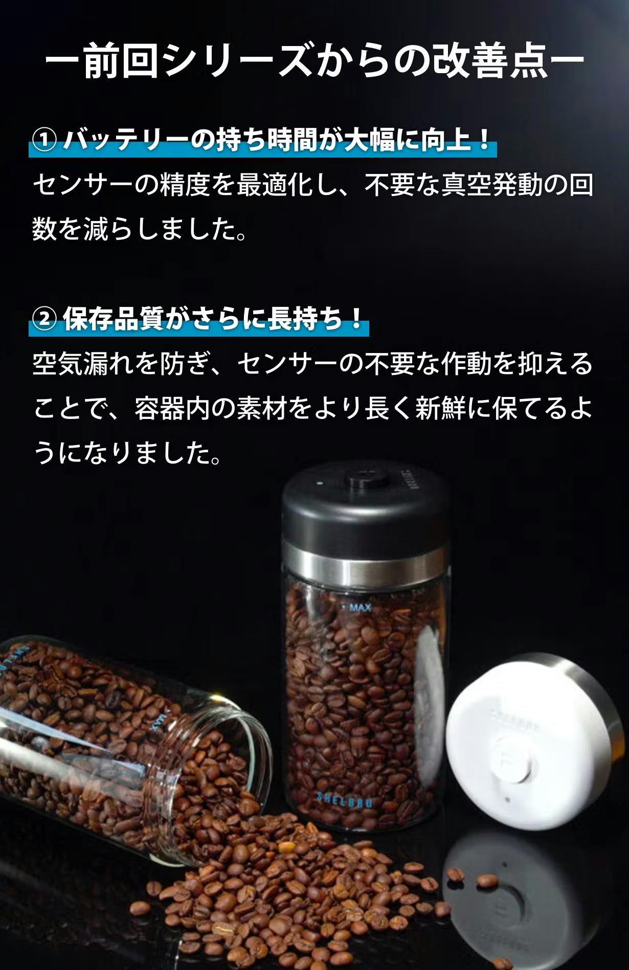 容器内の圧力レベルが20kPa以下に低下すると自動で調節。そのため、常に強力真空の状態を維持しコーヒー豆や中の食材が常に新鮮に保たれます。