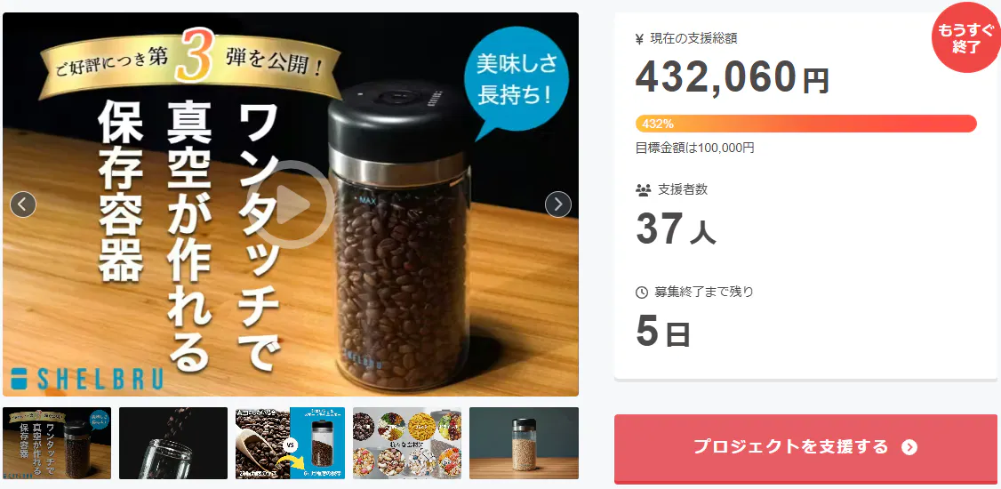 • ご支援者様、たった15秒で6ヶ月保存。コーヒー豆の鮮度を自動で守る真空キャニスターが登場にご興味をお持ちいただきありがとうございます。お陰様で、開始から支援 総額40万円達成することができました!終了までわずか 5 日となります。プロジェクト終了後、「たった15秒で6ヶ月保存。コーヒー豆の鮮度を自動で守る真空キャニスターが登場」をCamfire特別価格で入手することはできなくなりますので、ご支援がまだの方、追加支援をご検討の方はお急ぎくださいますようお願い申し上げます。ご興味のある方、ぜひ支援お願い致します。https://camp-fire.jp/projects/888686/viewBrightチームは、当プロジェクトをもっと多くの方に知っていただきたいと考えております。よかったら、FacebookやTwitter等のSNSでのシェア・拡散をお願い致します。#brightdiyどうぞよろしくお願い致します。Brightチーム もっと見る