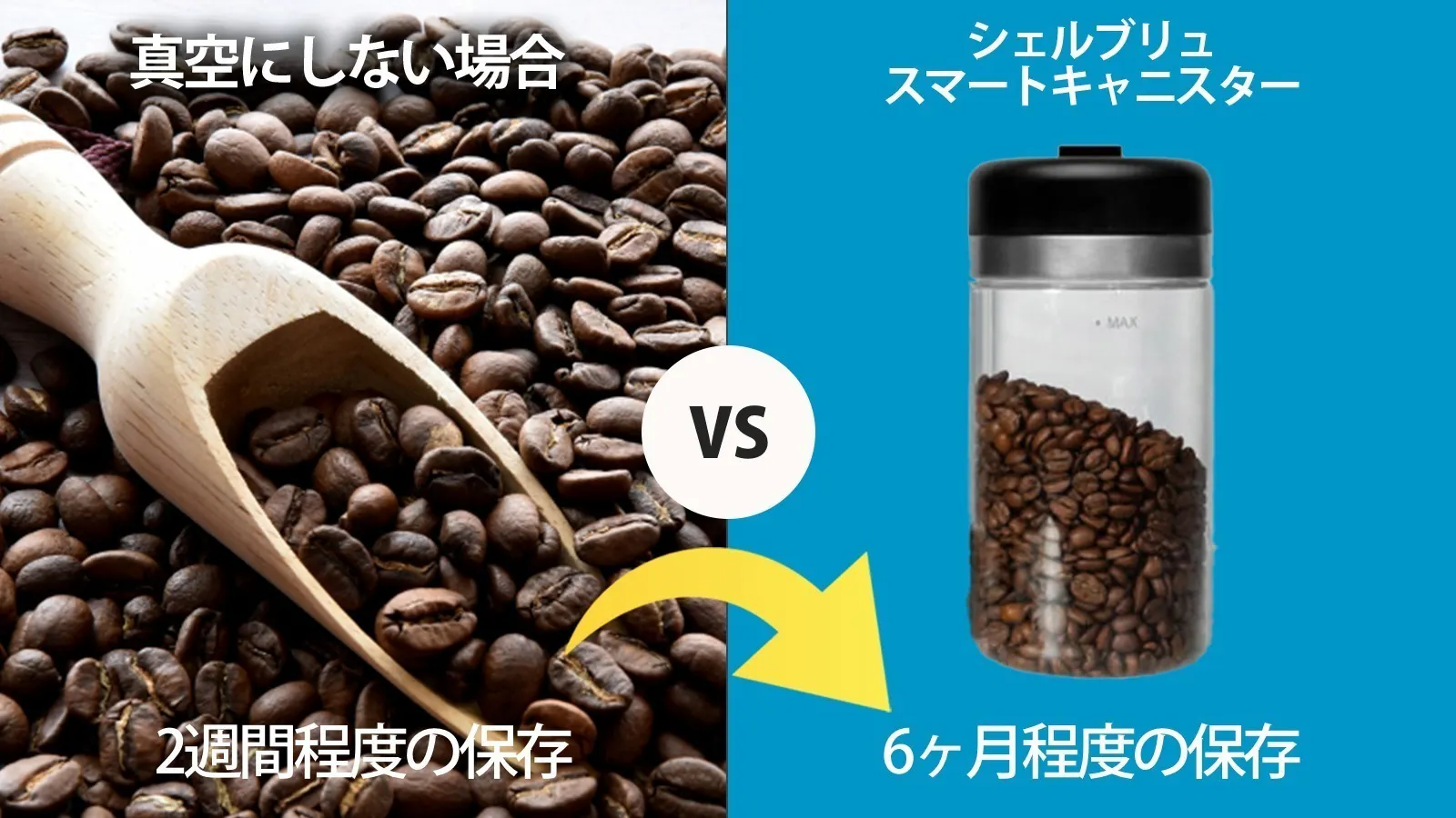 『スマートキャニスター』なら、蓋を開けなければ6ヶ月程度の保存が可能。