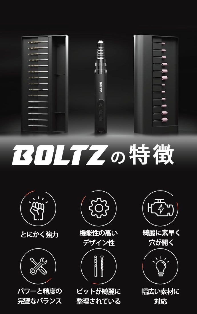 BOLTZがあれば「切る」「ドリルする」「彫る」「研磨する」がより簡単かつ快適なものになるでしょう!