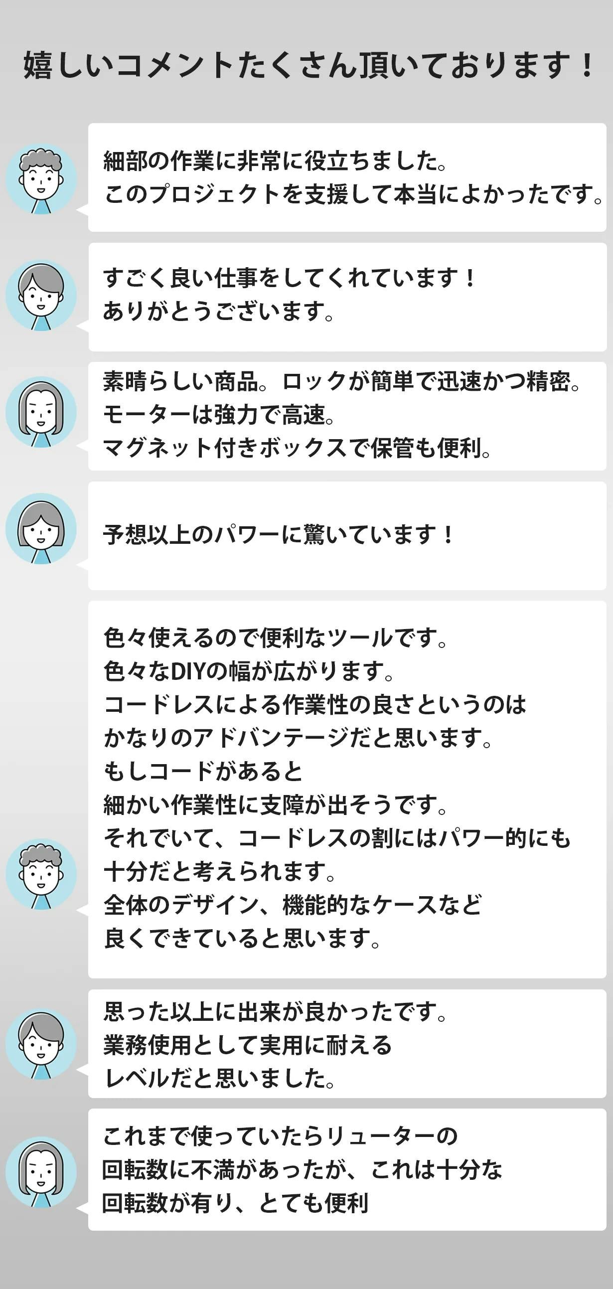 そのため、パワーがありながらも高い精度を維持できるBOLTZは皆さんのDIYをより楽しくする素晴らしいツールとなるでしょう。