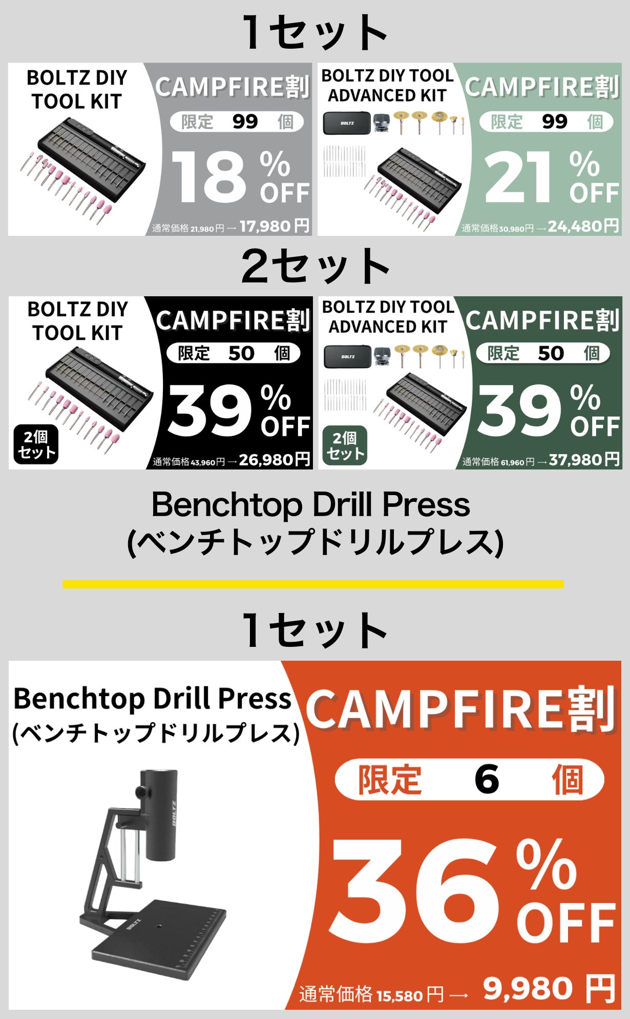 2026/04/10 12:00みなさん、こんにちは。BRIGHT DIYです。本日は皆さまに新しいプロジェクトを紹介させて頂きます。最大42%OFF!!!さらに、公開から5日間限定で使える5%OFFクーポンを発行させて頂きました。━━━━━━━━━━━━━━━━━━クーポンURLはこちら↓https://camp-fire.jp/projects/932471/view?ctoken=HEl0ocufoVHzZvvk クーポンは4月10日~4月14日限定でご使用頂けます。━━━━━━━━━━━━━━━━━━本体40g!120種精密ビットで、電動/手動も自由自在のペン型マルチドライバー!プロジェクト概要キャンペーン期間 2026年4月10日~2026年5月31日プラットフォーム machi-yaキャンペーンURL https://camp-fire.jp/projects/932471/view ※プロジェクト公開後から閲覧可能になります。2026年4月10日 12時からプロジェクト公開となります。数に限りがございますので、早い者勝ちです!!! 1点のリターンの場合先着25名様のみが37%OFFになります! もっと見る