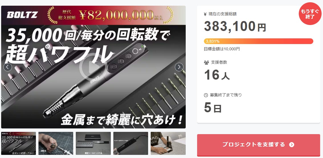 2025/12/24 13:01ご支援者様、累計出荷数5千個◎BOLTZコードレスミニルーターで木材から金属まで加工も自由!にご興味をお持ちいただきありがとうございます。お陰様で、開始から支援総額34万円達成することができました!終了までわずか7日となります。プロジェクト終了後、「累計出荷数5千個◎BOLTZコードレスミニルーターで木材から金属まで加工も自由!」をCamfire特別価格で入手することはできなくなりますので、ご支援がまだの方、追加支援 をご検討の方はお急ぎくださいますようお願い申し上げます。ご興味のある方、ぜひ支援お願い致します。https://camp-fire.jp/projects/888688/viewBrightチームは、当プロジェクトをもっと多くの方に知っていただきたいと考えております。よかったら、FacebookやTwitter等のSNSでのシェア・拡散をお願い致します。#brightdiyどうぞよろしくお願い致します。Brightチーム もっと見る