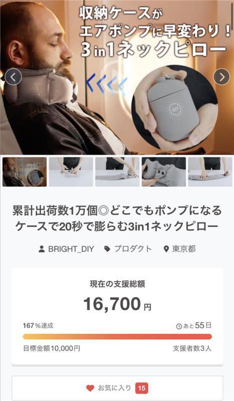 皆様、こんばんは!Bright DIYチームです。長時間の移動や旅行中、首の疲れを軽減し、快適な休息をサポートしてくれるアイテムは欠かせません。そんな悩みを解決してくれるのが、3in1ネックピローです。飛行機や新幹線、長距離バスでの移動中でも、首を優しくサポートし、リラックスした状態をキープできるこのネックピローは、あなたの移動時間をぐっと快適にしてくれます。1. 優れたサポート力とフィット感このネックピローは、直径25cm × 高さ13cm × 厚さ7cm(全長60cm)というサイズ感で、首にしっかりとサポートを提供します。適度な高さとクッション性が絶妙に調和しており、首を優しく包み込むことで自然な姿勢をキープできます。移動中の長時間の休息でも、首に負担をかけることなく、リラックスした状態を保てます。2. 肌触りの良い素材で快適さが続くネックピローの素材にもこだわりが詰まっています。肌触りの良いコットン素材を使用しており、通気性と吸水性に優れているため、暑い季節でも蒸れにくく、長時間使用しても快適さが続きます。柔らかな生地は肌に優しくフィットし、どんな体勢でもリラックスできるのが大きな魅力です。移動中や休憩中に使えば、まるで自宅でくつろいでいるような感覚を味わえるでしょう。3. 軽量でコンパクト – 持ち運びに便利TPU素材を採用しており、軽量かつ耐久性が高いこのネックピローは、簡単に空気を入れて膨らませることができます。使わないときは、空気を抜いてコンパクトに収納できるため、持ち運びがとても便利です。旅行バッグやバックパックにすっぽり収まり、荷物を増やすことなく、どこへでも気軽に持っていけます。「3in1ネックピロー」は、旅行や長時間の移動での快適な休息を提供してくれる、軽量でコンパクトなアイテムです。優れたサポート力と肌触りの良い素材、さらに持ち運びやすさも抜群で、どこにでも手軽に持っていけます。移動中に疲れを感じたら、このネックピローでリラックスして、より快適な時間をお過ごしください。以上、Bright DIYチームでした!ご興味のある方はこの機会をお見逃しなく!https://camp-fire.jp/projects/view/888691Brightチームは、当プロジェクトをもっと多くの方に知っていただきたいと考えております。よかったら、FacebookやTwitter等のSNSでのシェア・拡散をお願い致します。#3in1ネックピロー #brightdiyどうぞよろしくお願い致します。Brightチーム
