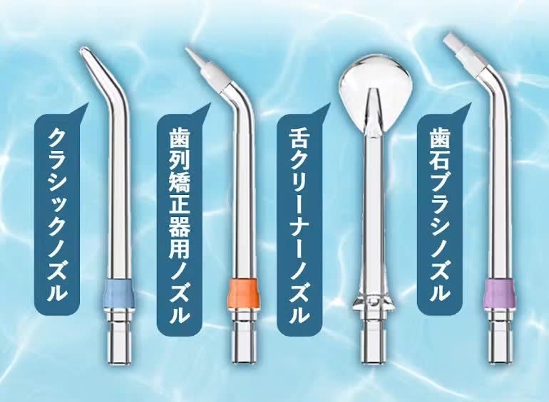 さらに、この製品には360度回転するノズルが搭載されており、どんな角度でもラクに操作できます。これにより、歯の裏側や歯茎の奥、歯と歯の間などの細かい部分にも水流がしっかり届き、まるでプロのケアを受けたような爽快感を得られます。回転ノズルのおかげで、手首を大きく動かす必要もなく、使い勝手は抜群。歯周病の予防や口臭対策にも効果的で、毎日のケアをワンランク上に引き上げてくれます。