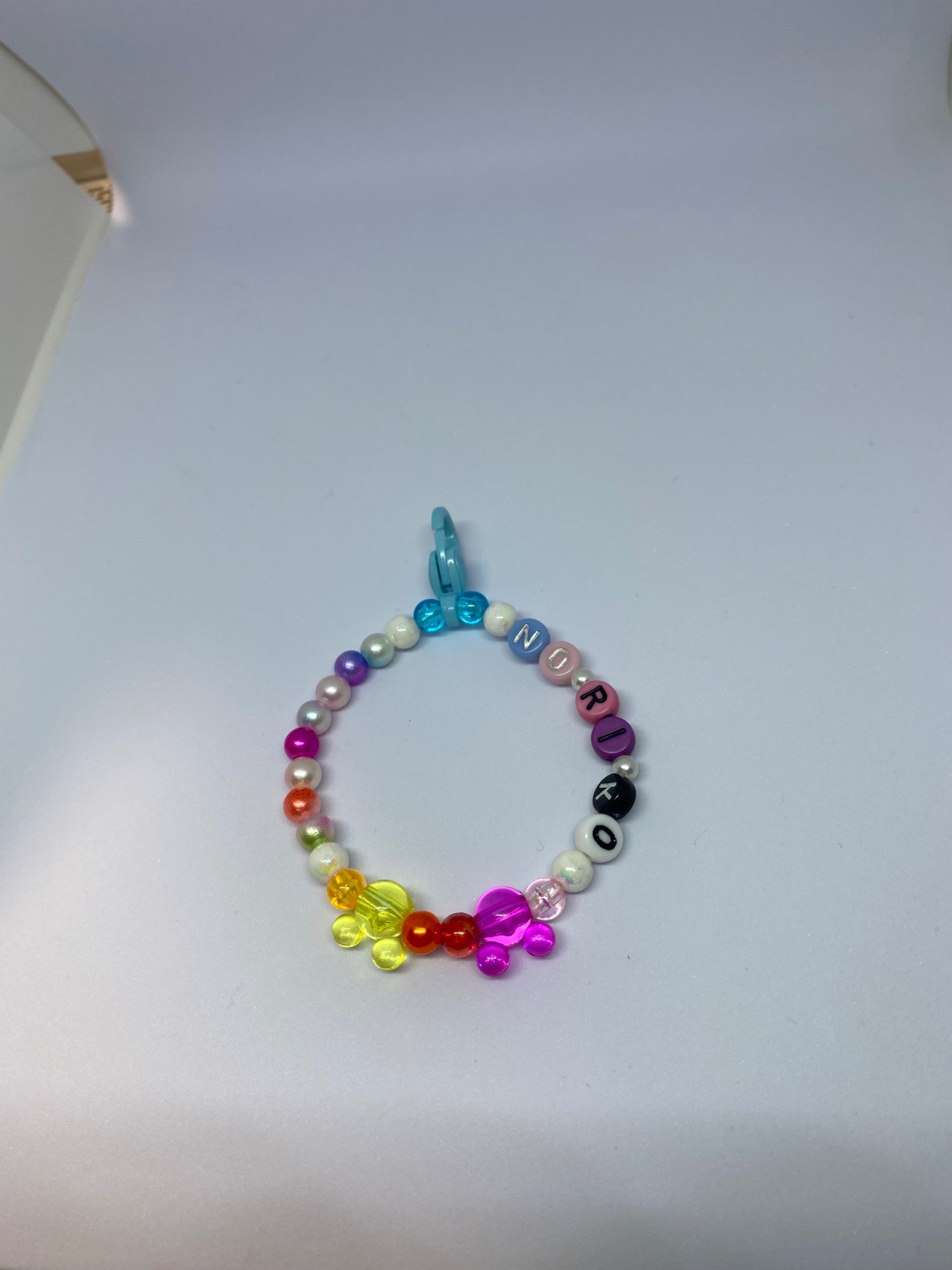 妻の手作りのブレスレットとストラップ(名前入れ可)です。