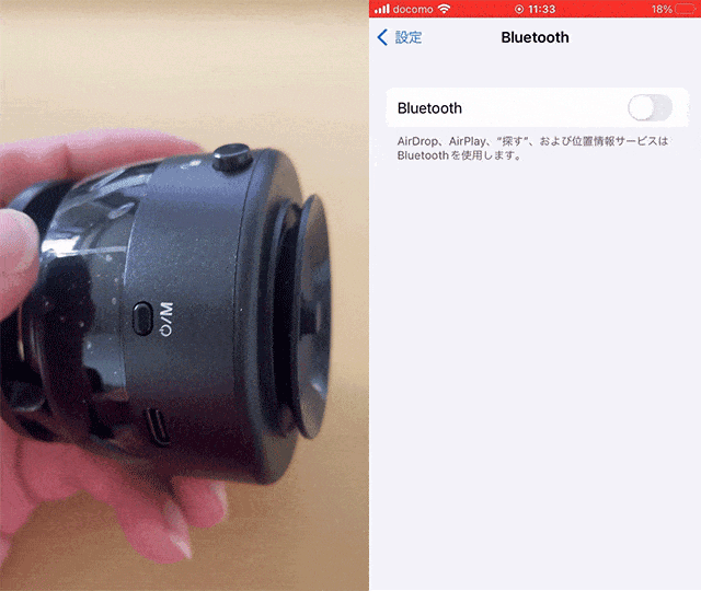 本体の電源ボタンを約3秒間長押しすると、電源が入りペアリングモードになります。