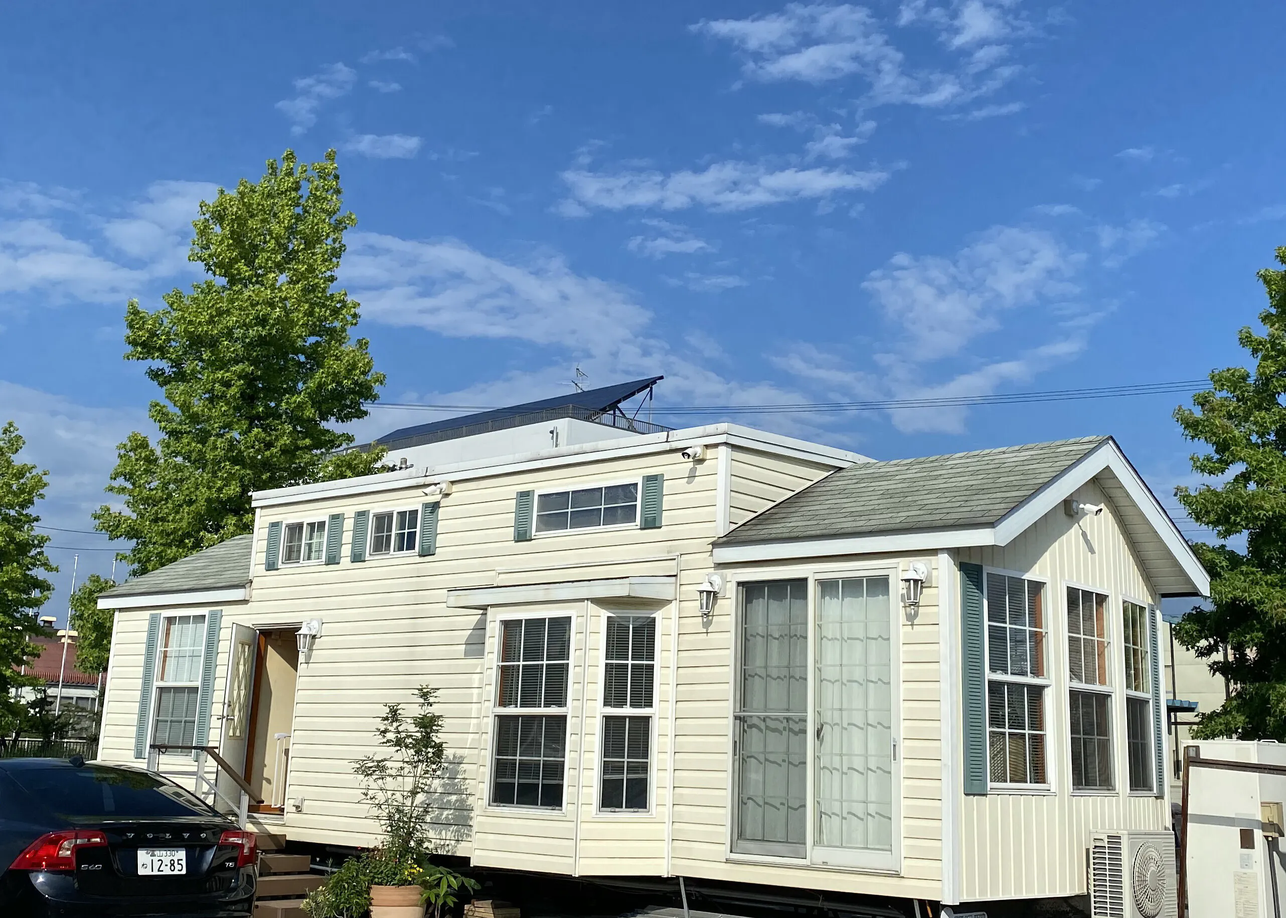 タイヤの付いた家 実際には室内に入ると想像以上に広く開放感もあり驚かれると思います。