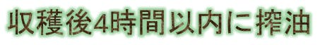 1. 搾油までの時間: 収穫後4時間以内に搾油 「プレミアムな新鮮さと味わい」