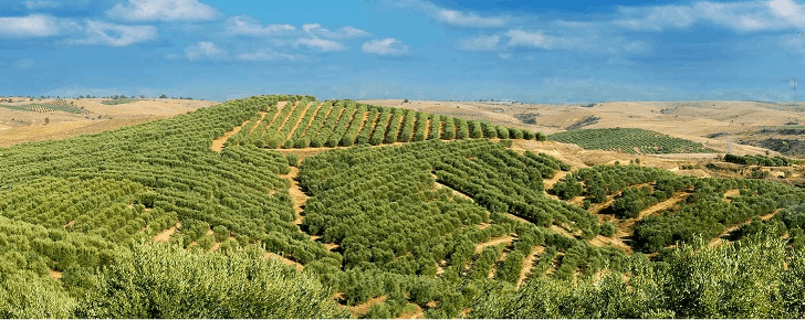 この地域で生産者を訪問した際に撮影した動画をお見せしたいと思います。一帯はオリーブの木でいっぱいです。高い丘をよくご覧ください。