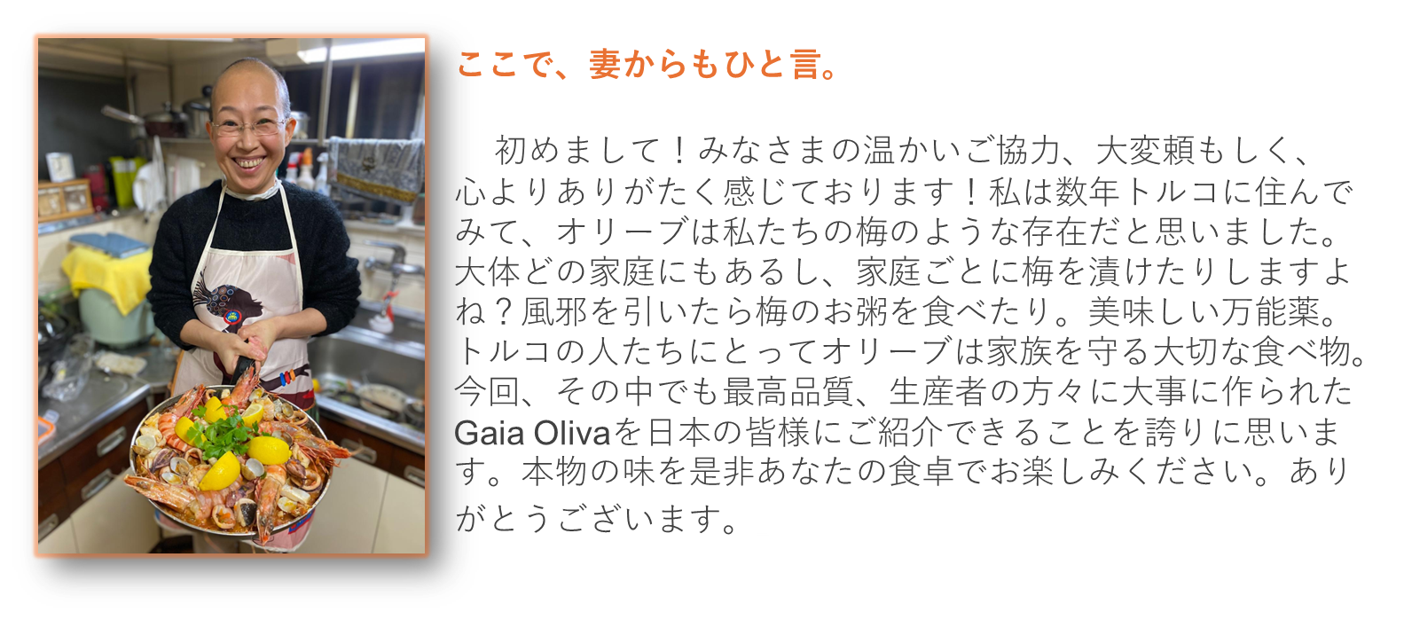 このオリーブオイルを日本に届けてくださって、本当にありがとうございます。"