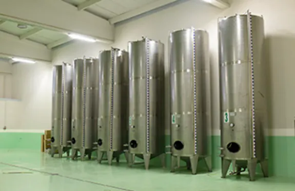 * シリーズ2(フレーバーオリーブオイル): シリーズ2で使用されるオリーブの収穫は今年の11月末の予定です。そのため、年内にサポーターの皆様にお届けするため、この商品につきましては昨年度のオリーブを使用いたします。製品は品質からパッケージまで全く同じ内容です。なお昨年のタンジェリンとベルガモットは日本のオリーブ品評会で日本一のフレーバーオイルを受賞しており、受賞商品と同商品のお届けとなります。現在は下の写真のタンクの中で温度管理され、遮光されたクロム製タンクで静かに休ませることで、品質を保っております。