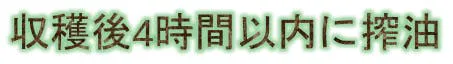 1. 搾油までの時間: 収穫後4時間以内に搾油 「プレミアムな新鮮さと味わい」