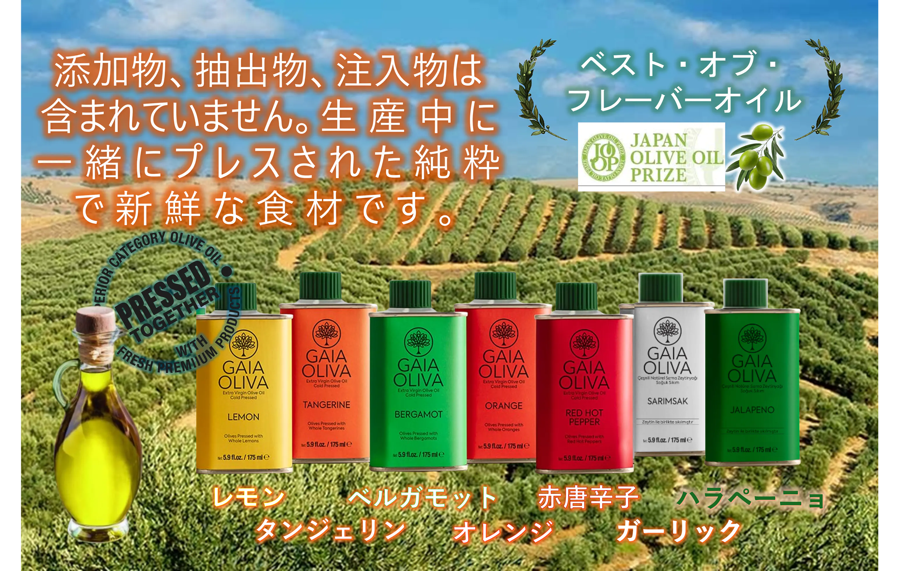 ここからは、GAIA Olivaの最高級エキストラ・バージンオリーブオイル(EVOO)のご紹介です。