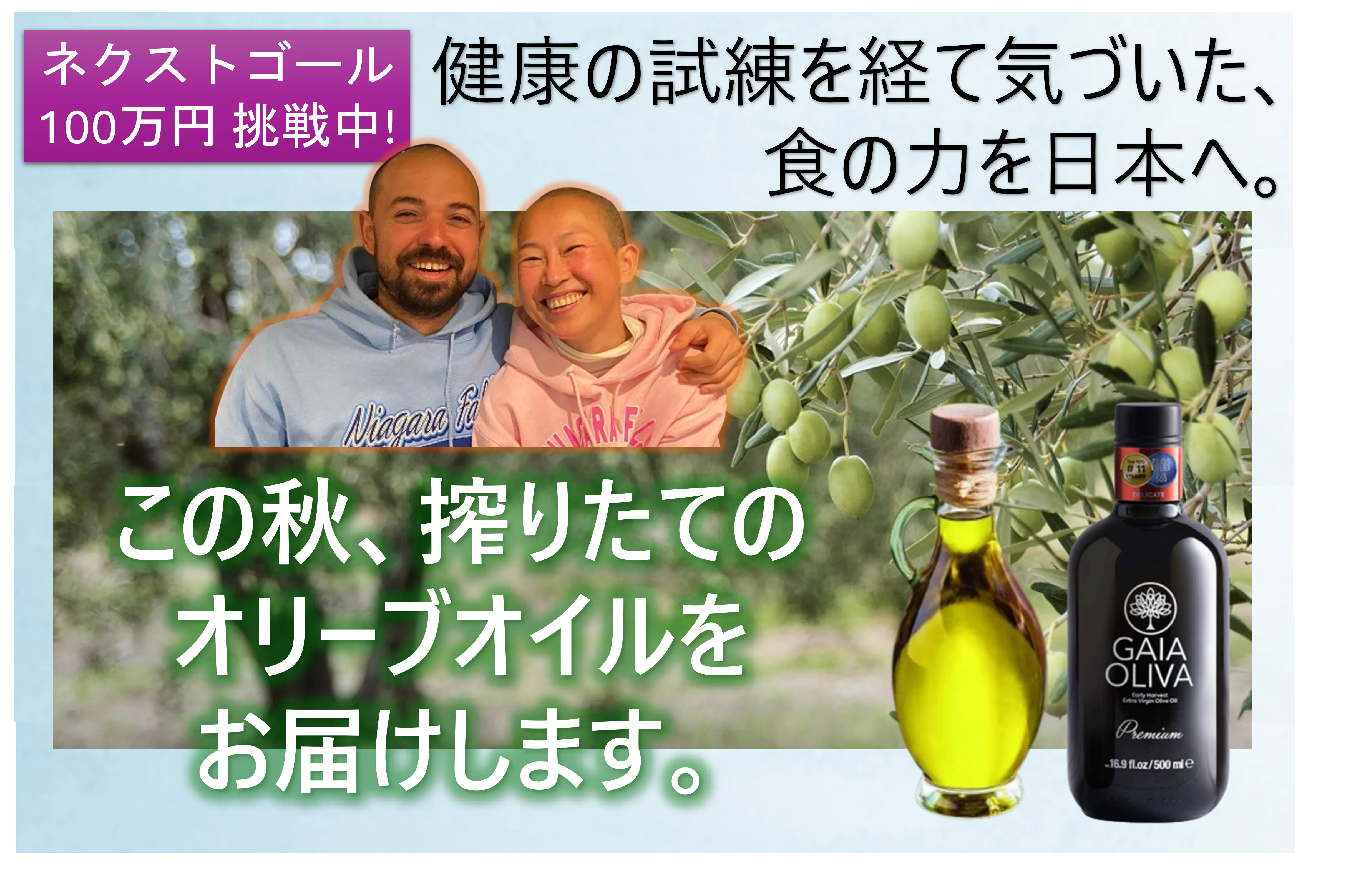 このクラウドファンディングを10月初旬に決めたのも、この時期はオリーブという生命の収穫の時期と重なっているからです。