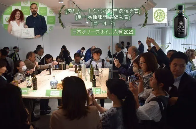 Gaia Oliva は、日本だけでなく、イタリア、スペイン、アメリカのコンテストでも高水準の賞を受賞しています。Gaia Oliva は公式の EVOOWR 2024 ランキングの「世界のオリーブオイル生産者トップ100」で8位を獲得しました。