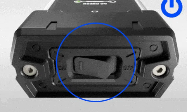 ※スイッチを切り替える際は、必ず確実に回しきってください。時計回りに回すと通電状態(ロック)/ 反時計回りに50度回すと完全に電源オフになります。