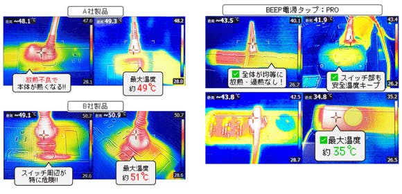 安全性を考慮し、発熱や火災のリスクを軽減。BEEP電源タップ:PROは高品質の素材を使用し、放熱効率が高く耐火・耐熱にも優れた構造になっています。
