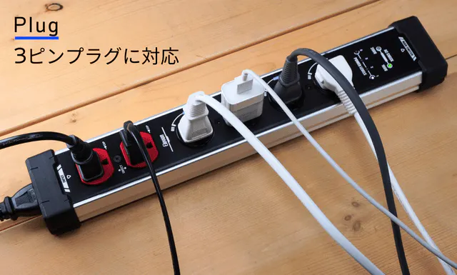 BEEP電源タップ:PROは、通常の2ピンプラグの接続はもちろん、3ピンプラグに対応しており、オフィスでの場面に使用できます(プロジェクター、モニター、電子レンジなど)。