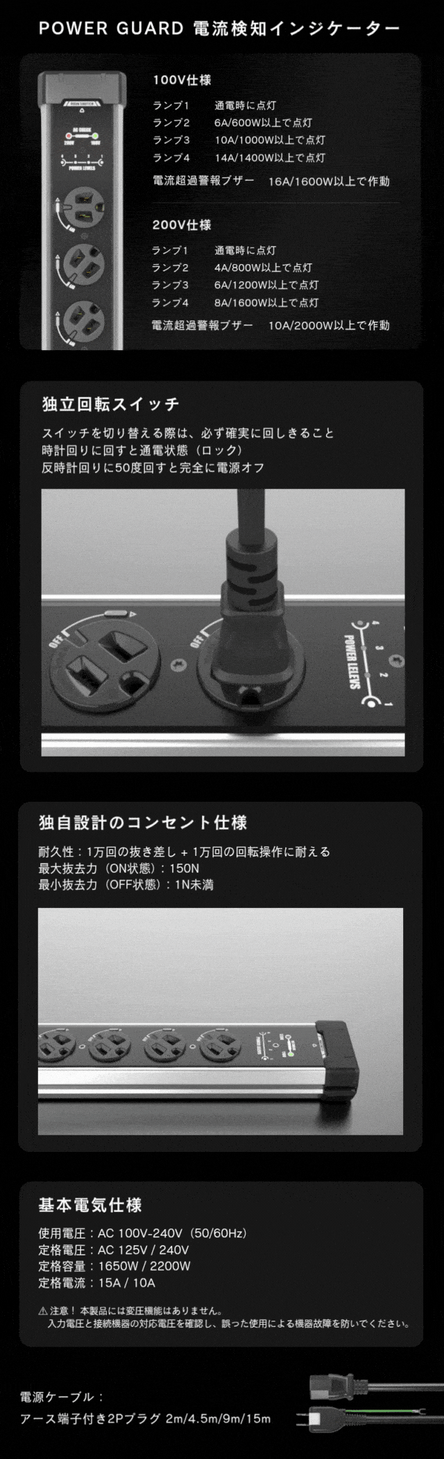 この3点のバランスがとれていると、「強く・長く・安全に」機器を守れる電源タップだと言えます。