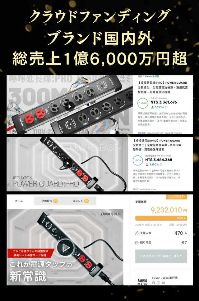 Elevonは台湾最大級のクラウドファンディングサイトZeczecにて、総額3,480万ニュー台湾ドル(日本円で約1億5,700万円)を超える支援をいただいております。その中でも抜群の安全性を誇る「BEEP電源タップ:PRO」が、日本仕様になって初上陸!