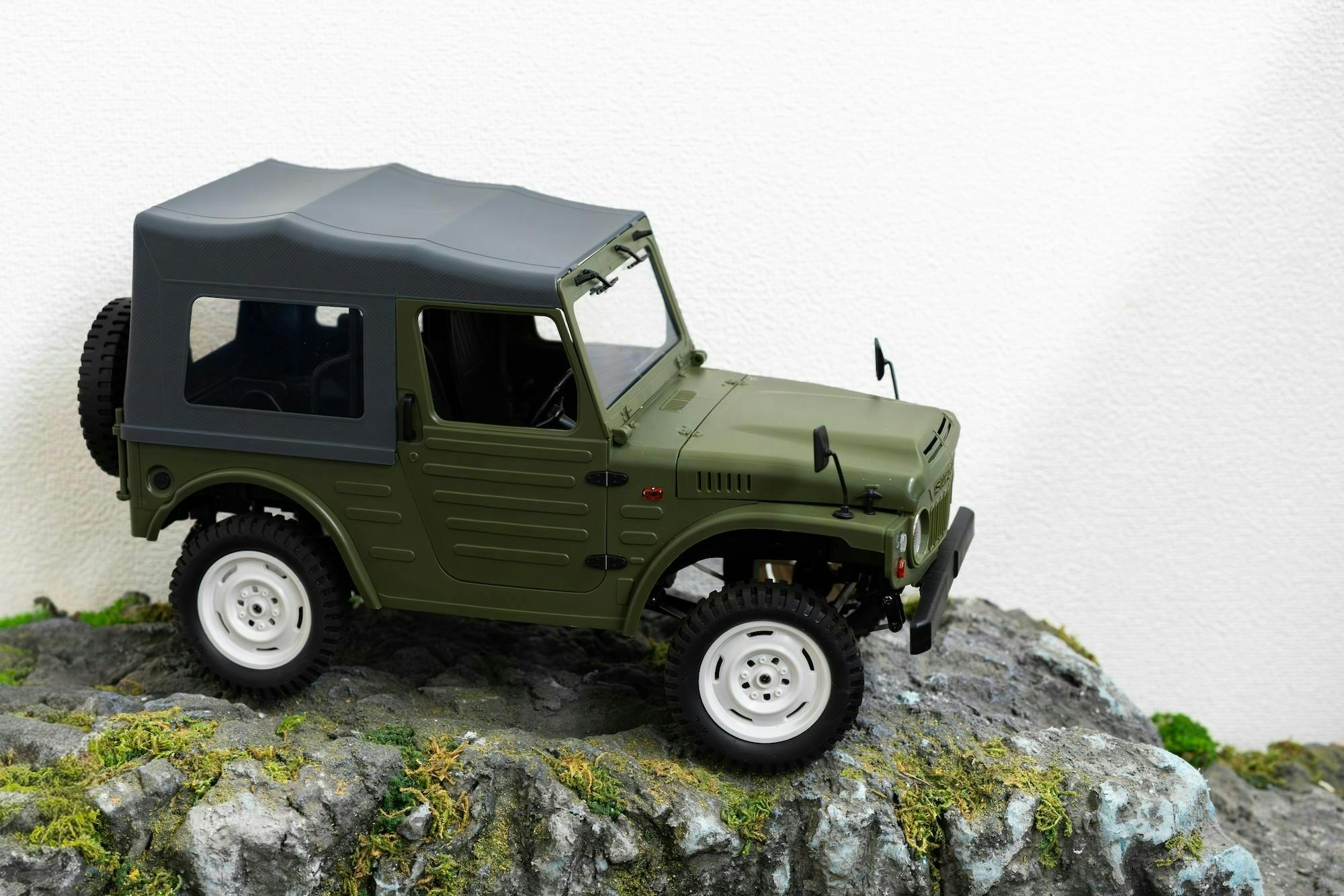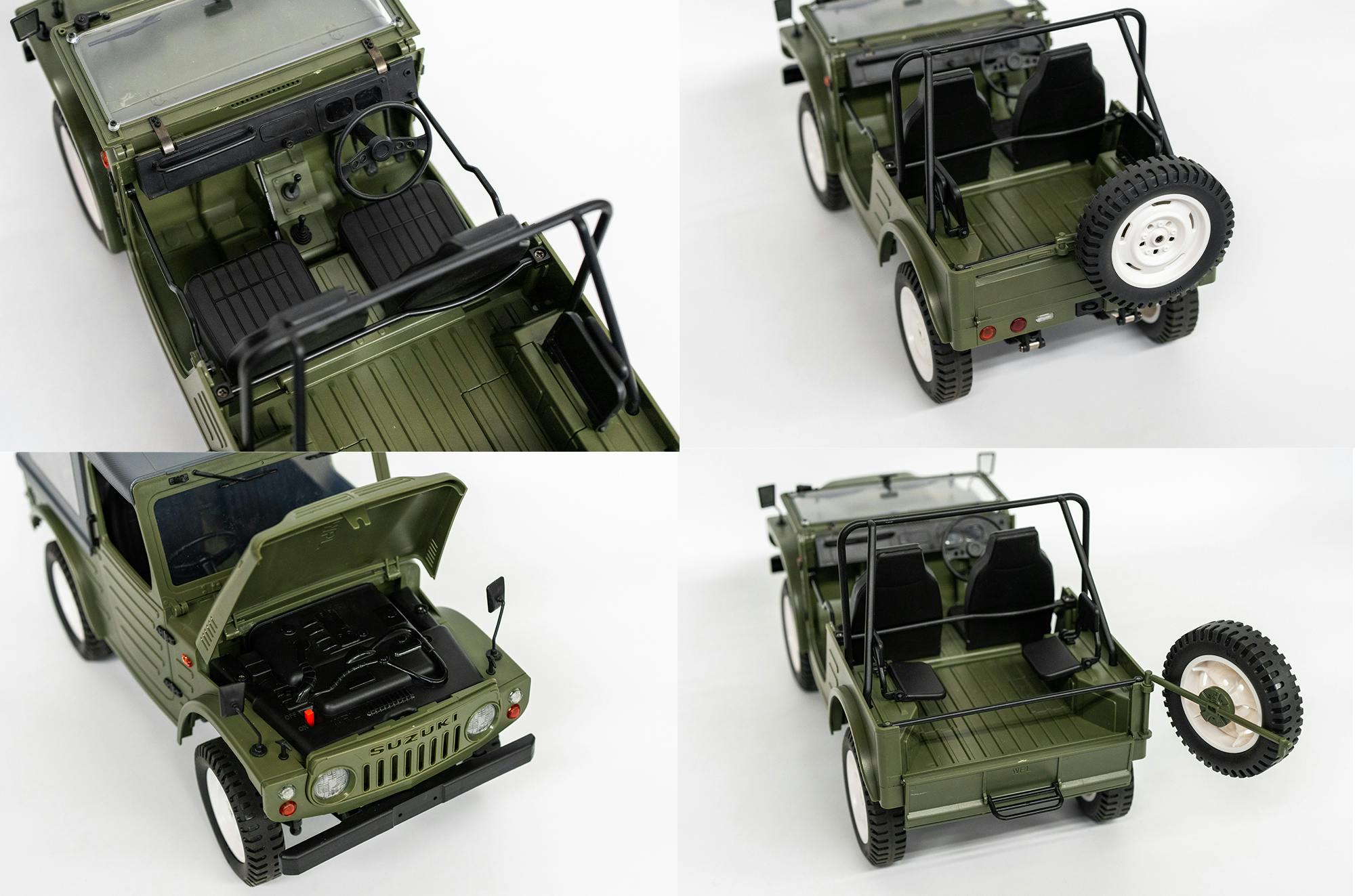 ボンネットの独特なプレスライン、無骨ながらも愛らしい「垂れ目」グリル、ほかにも1型とは異なるフェンダーミラーやバンパーの形状など。細部に宿る名車SJ10の「最終型=完成形」である4型の魂を1/10スケールに凝縮し、デスクに飾って満足し、オフロードで走らせて感動する。そんな、すべてのジムニーファン、RCファンが心から「手に入れてよかった」と思える一台をお届けします。