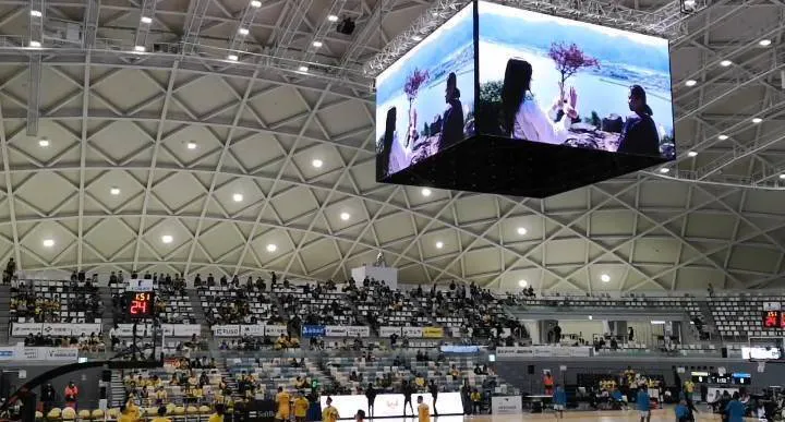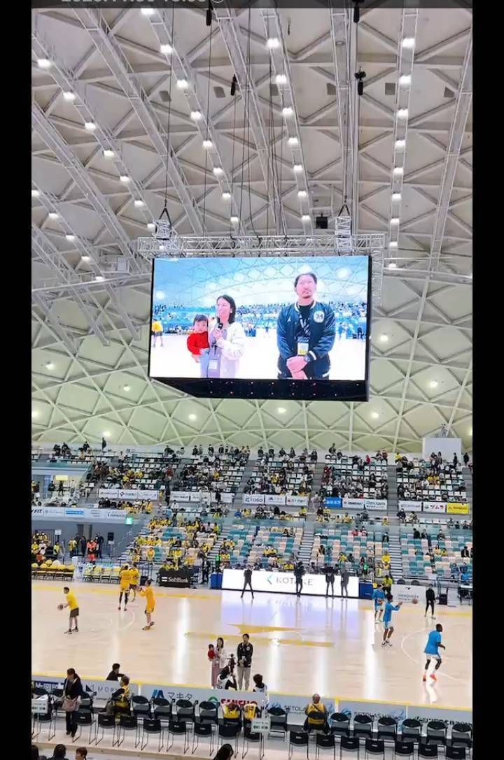 最終日には、高松の穴吹アリーナにて、プロバスケットボールチーム 香川ファイブアローズ さんの試合前に番組宣伝のお時間をいただきました。