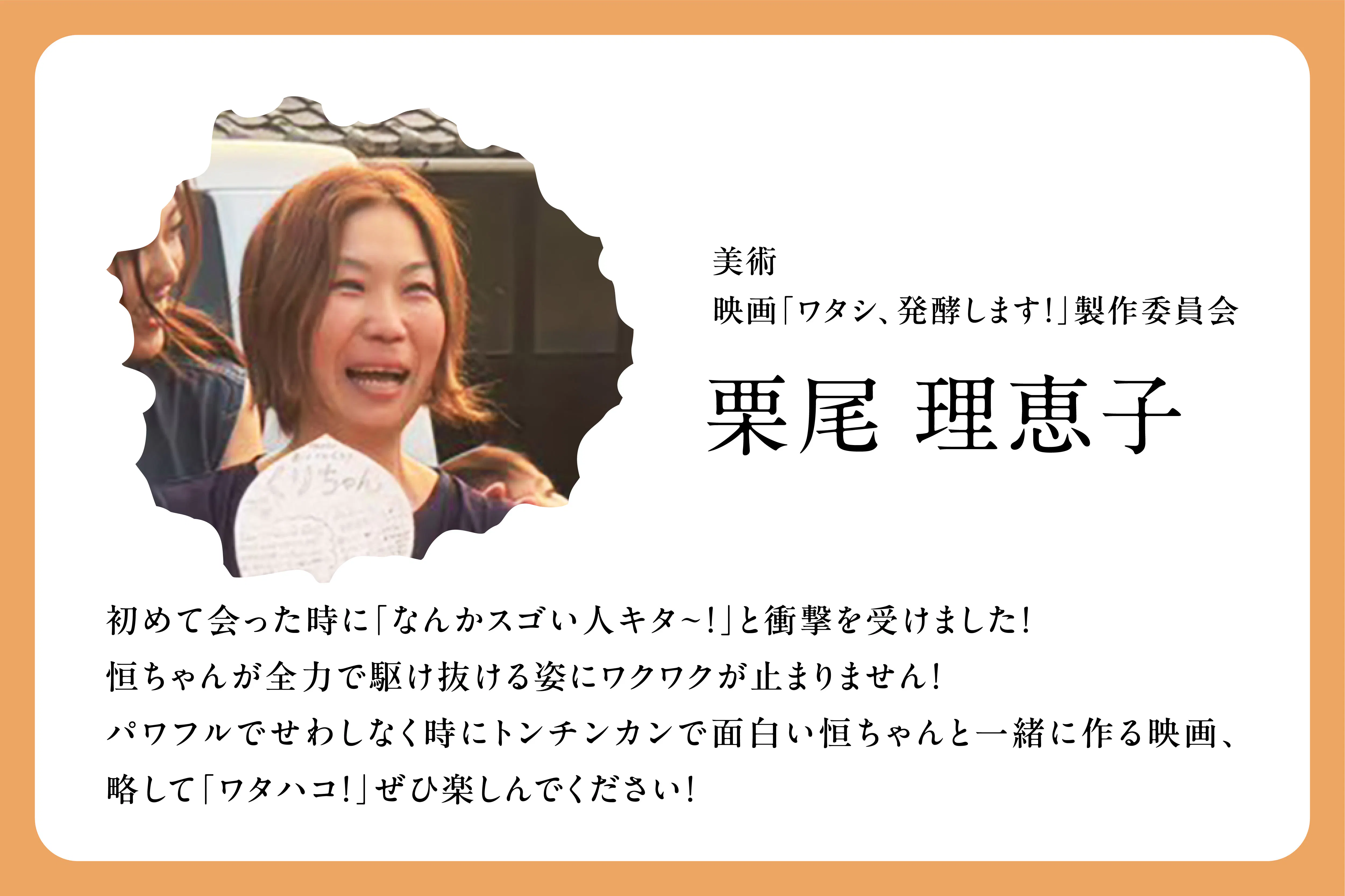映画「ワタシ、発酵します!」のエンドロールにお名前を掲載します。「備考欄」に掲載ご希望のお名前を必ずご記入ください。(一つご購入につき一名まで)