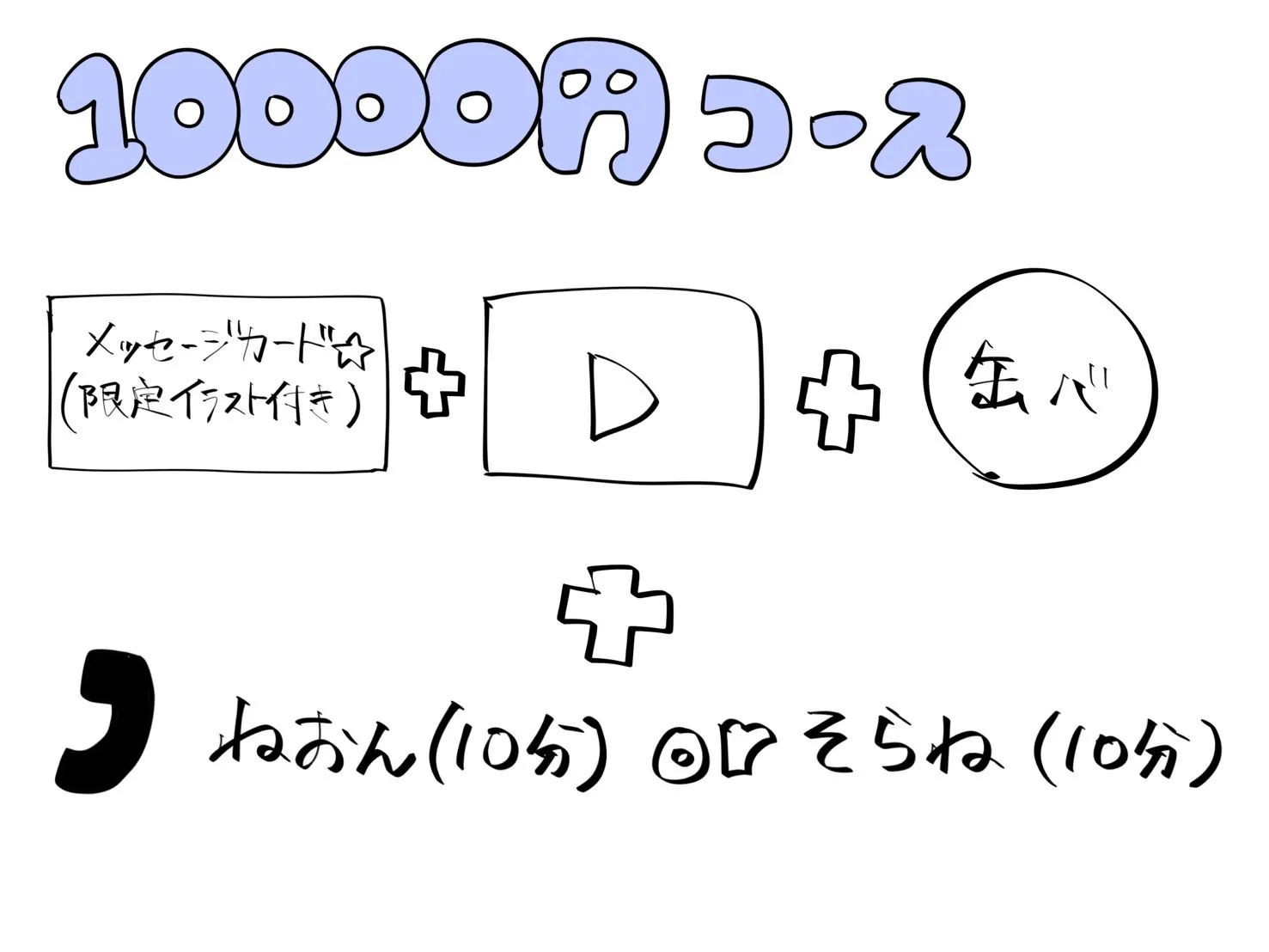 ・5000円コースの内容に加えて、ねおん/そらね。のいずれかを選んで通話(10分)ができます!📞