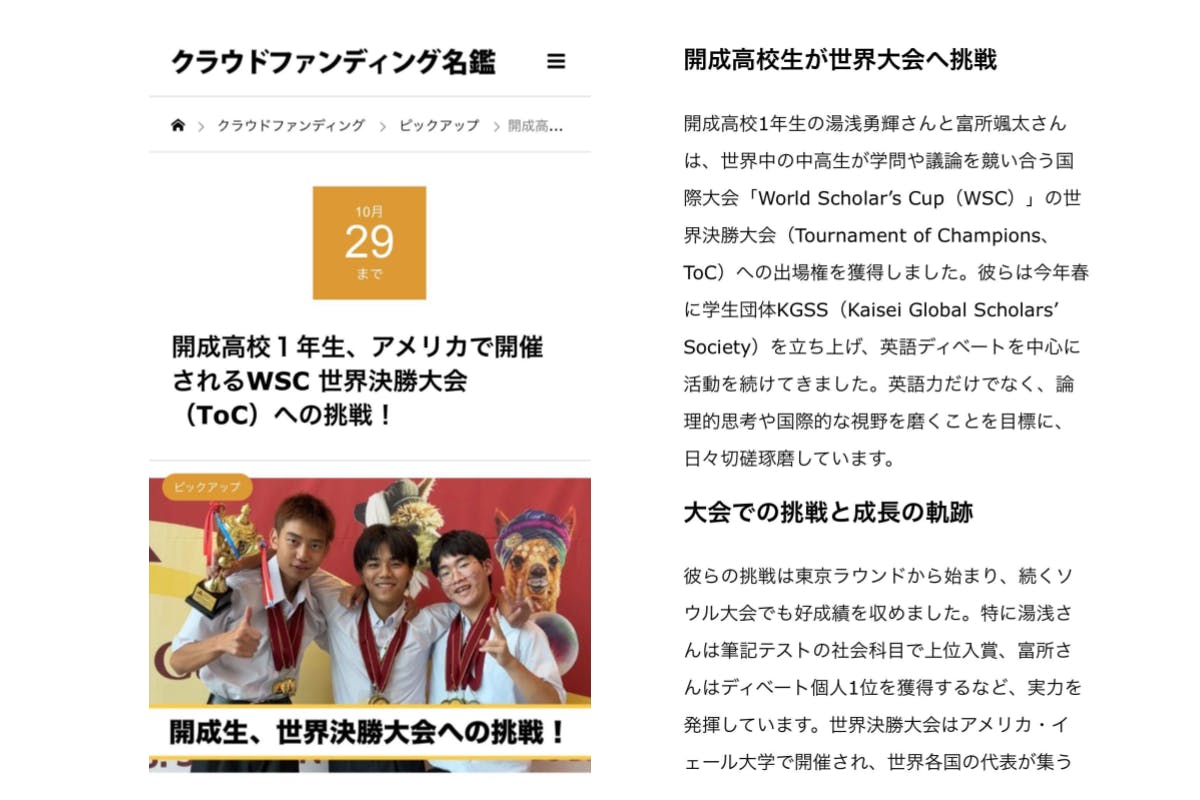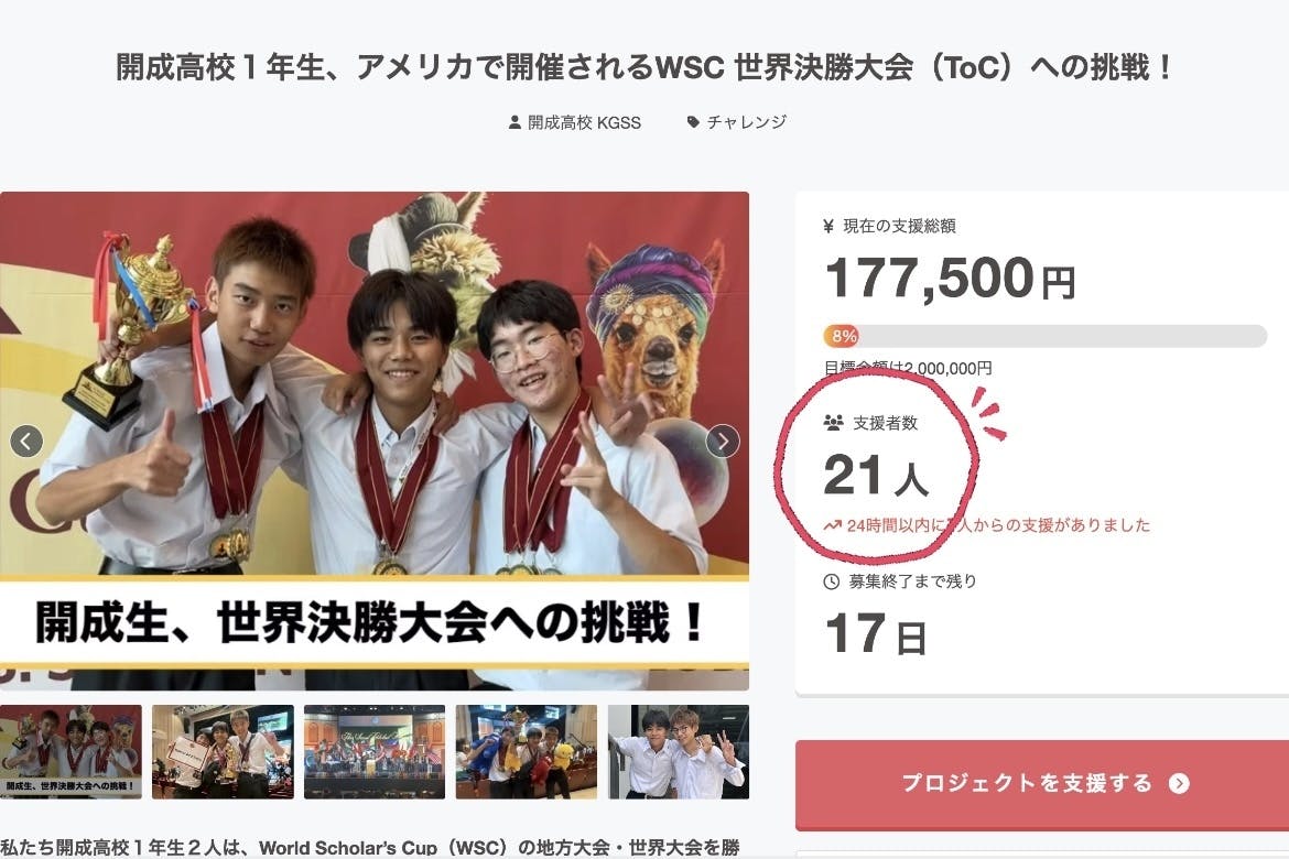 3連休、皆さんいかがお過ごしでしょうか?本日、私たちは複数のFacebook上のクラウドファンディング情報共有グループに、プロジェクトの投稿をさせていただきました。一人でも多くの方に、私たちの想いや挑戦の背景を知っていただけたら嬉しいです。そして、今日までに21名もの方々からご支援をいただきました!本当にありがとうございます。本日はなんと、海外からご支援くださった方もいらっしゃいました。遠く離れた場所から応援していただけたことに、心から感激しています。応援のコメントや励ましの言葉のひとつひとつが、私たちにとって大きな力になっています。まだスタートしたばかりですが、残りの日々も全力で走り抜けていきます。どうぞ引き続き、温かい応援をよろしくお願いいたします。