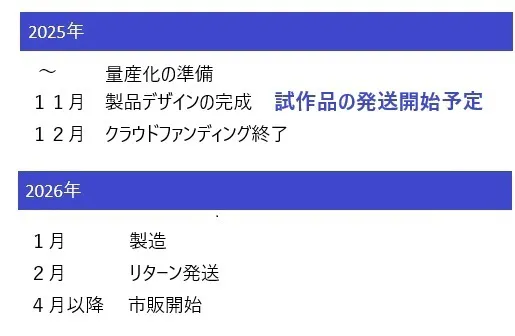 (試作品は年末のご支援の場合、年明けのお届けとなる可能性がございます。)