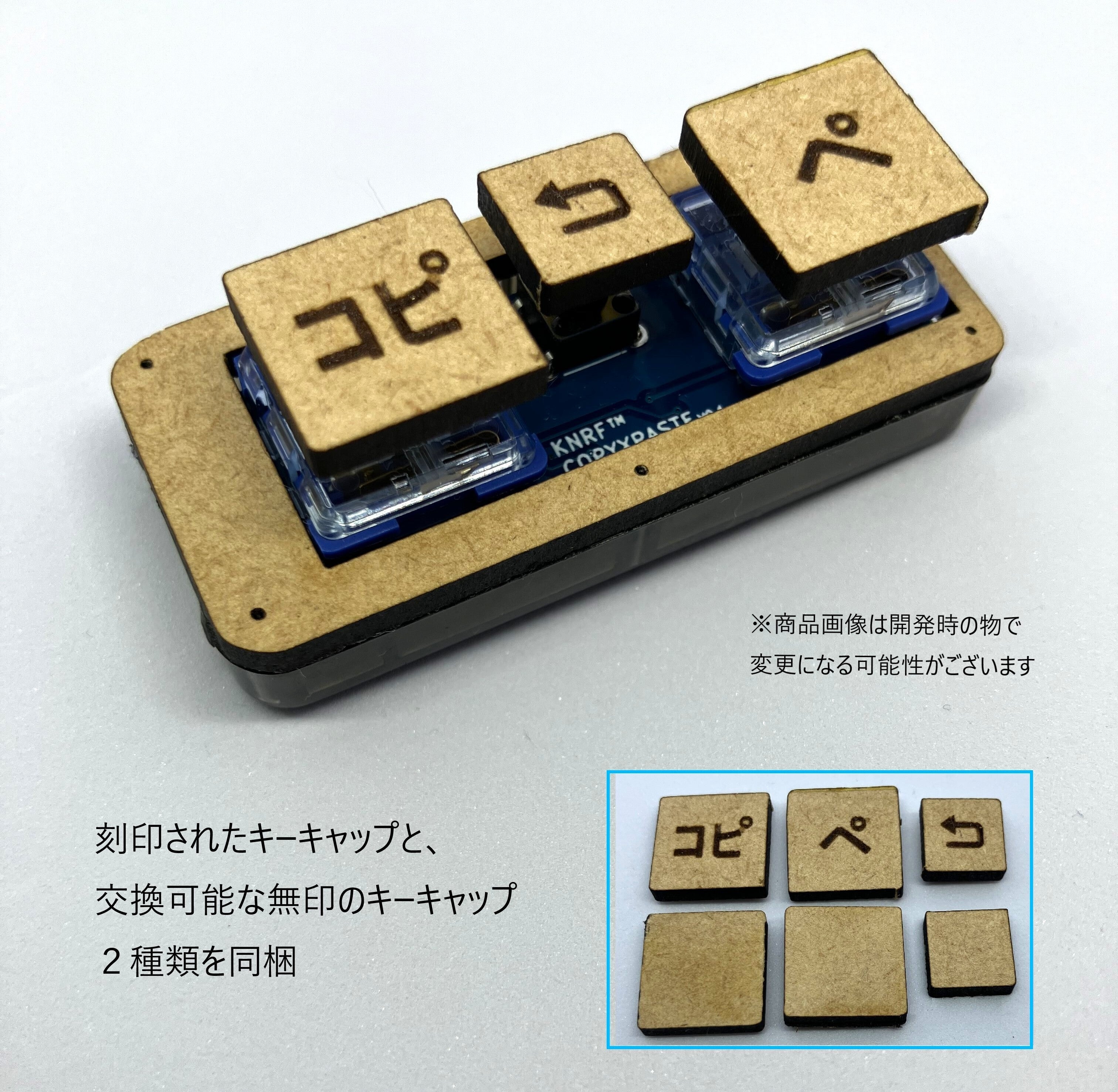 2025/12/05 22:32商品名デザイン公開!商品名「COPYXPASTE WOODY」出荷時の設定では、「コピー」と「ペースト」ボタンと、真ん中の少し小さいボタンで、「元戻す」操作を行えます。2種類の押し心地の違いで操作感をアップしました。 もっと見る