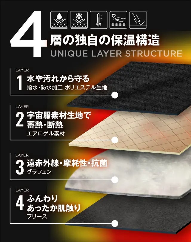 【素材】表生地:ポリエステル100%内部充填物:S.KISTLER®エアロゲル グラフェン裏地:ポリエステル100%
