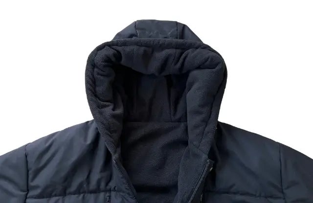内部のフリースが首元から耳元まで包み込み、寝袋内部の暖かい空気を逃しません。