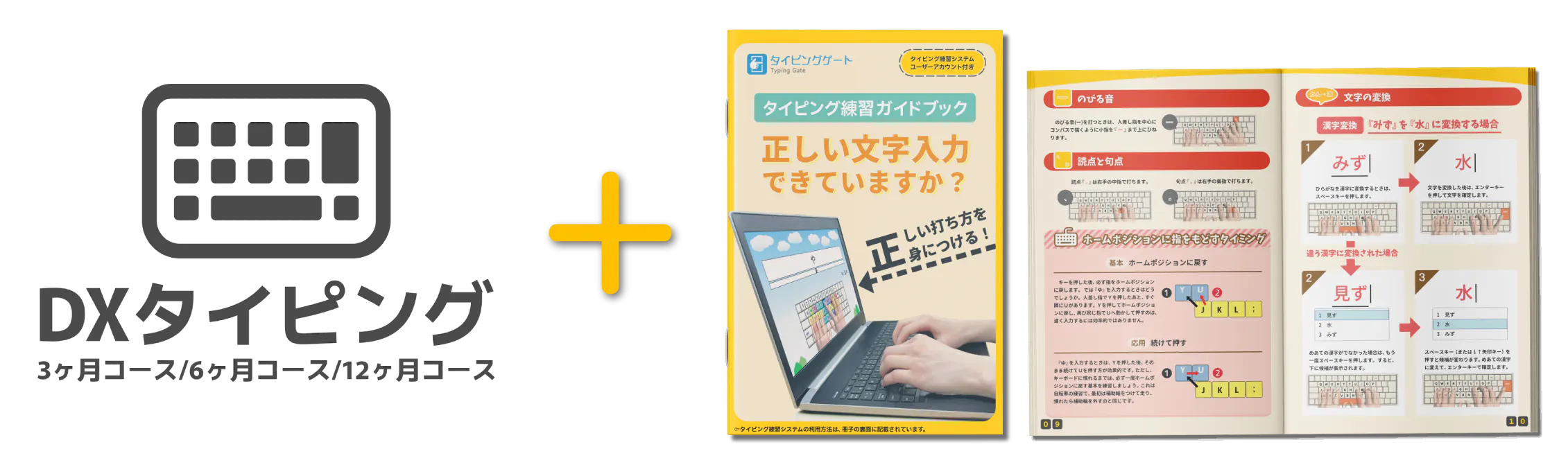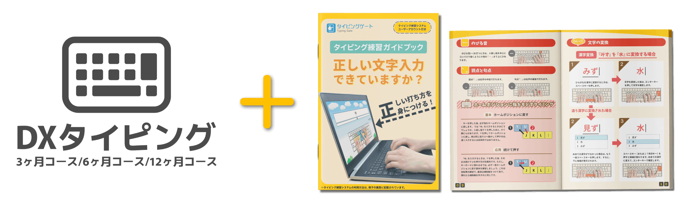 正しい打ち方や練習法を知りたい方へ。ガイドブックとDXタイピング練習システムのセットで、はじめての方でも安心してすぐに始められます。