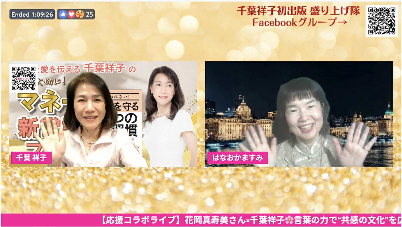 また、夜は20時から、お金の専門家で『お金を守る7つの習慣』著者、千葉祥子さんとFacebookライブをしてたくさんの方に来ていただくことが出来ました。Facebookライブも人生初でしたが、とても楽しいひと時でした。