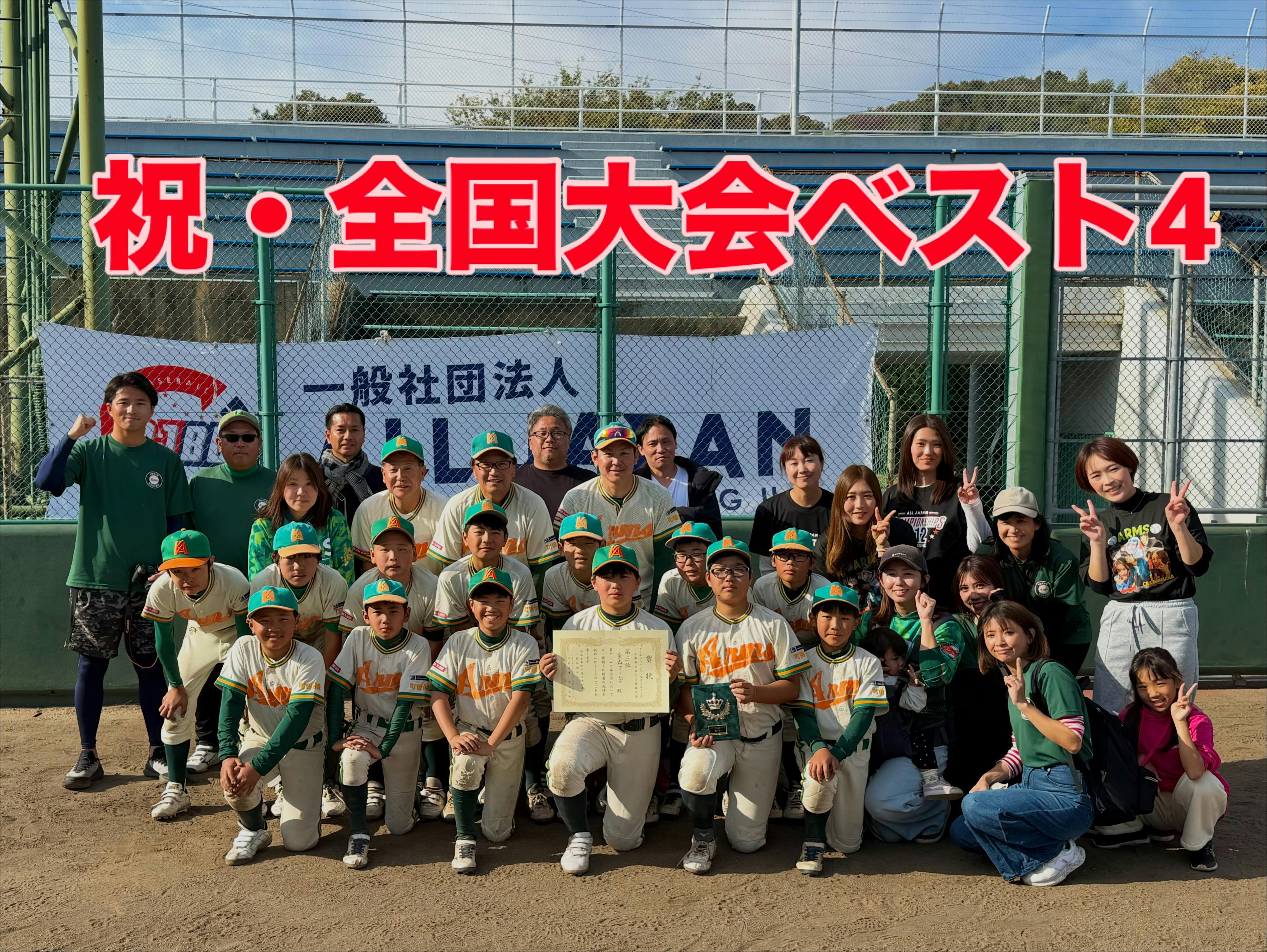 2025/11/24 20:543泊4日にわたる愛知遠征、オールジャパン全国大会。私たちの挑戦は、準決勝で大阪代表に1−4で惜しくも敗れ、ベスト4という結果となりました。初戦での劇的な逆転勝利から始まり、選手一人ひとりが自分の役割を果たし、全力で戦い続けてくれました。どの試合も決して簡単ではありませんでしたが、仲間を信じ合い、声を掛け合い、幾度も苦しい場面を乗り越えていく姿に胸を打たれました。そして準決勝では惜しくもあと一歩及びませんでした。それでも選手たちは東京代表として、そして町田市代表として、どの場面でも最後まで全力を尽くしてくれました。その姿勢は、この遠征で得たかけがえのない財産です。監督・コーチ・父母一同、この4日間を「最高の全国大会だった」と胸を張って言えます。最後の一球まで気持ちを切らさず戦い抜いた選手たちに、心から「ありがとう」を伝えたいです。そして、どんな瞬間も前を向いて戦い抜いた選手へ――よく頑張った。本当に胸を張っていい。そして、届けてくれた数えきれない感動に、心からありがとう。また、全国大会出場にあたり、本当に多くの皆様からご支援や温かいご声援をいただきました。皆様からの応援は、選手の背中を力強く押し、父母やチーム全体の大きな支えとなりました。この場をお借りして、改めて深く御礼申し上げます。応援してくださったすべての皆様、本当にありがとうございました。 もっと見る