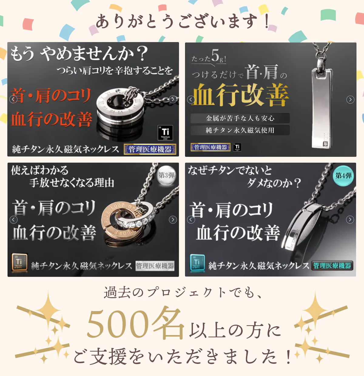 2026/02/10 11:24皆様、いつもお世話になっております。大好評をいただいた純チタン磁気ネックレス【PURE LOOPリングタイプ】につきまして、再販を望むお声を多数いただき、このたびアンコールプロジェクトを開始いたしました!ユニセックスなデザインで、磁気ネックレスに見えないほど自然に身につけられる、普段使いしやすい仕上がりとなっております。まだまだ寒い時期が続き、肩や首に力が入りやすく、血行不良からコリを感じる方も多いかと思います。そんな時期こそ、毎日の生活の中でしっかり筋肉のコリと血行を改善してくれる【純チタン磁気ネックレス PURE LOOP リングタイプ】を、ぜひ一度お試しください。前回購入のタイミングを逃してしまった方、気になっていた方も、今回あらためて特別価格にてお求めいただけます。※数に限りがございますので、ご検討中の方はお早めにご確認いただけますと幸いです。詳しくはこちらhttps://camp-fire.jp/projects/912770/view?list=watched もっと見るご支援ありがとうございました。