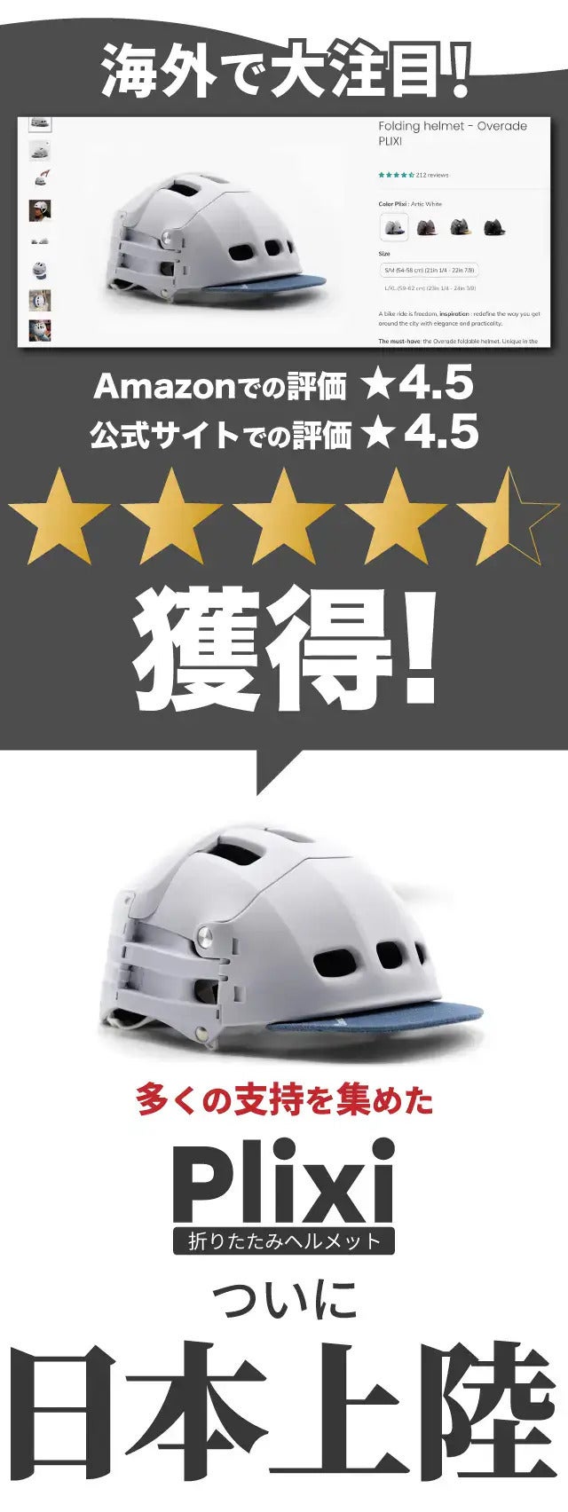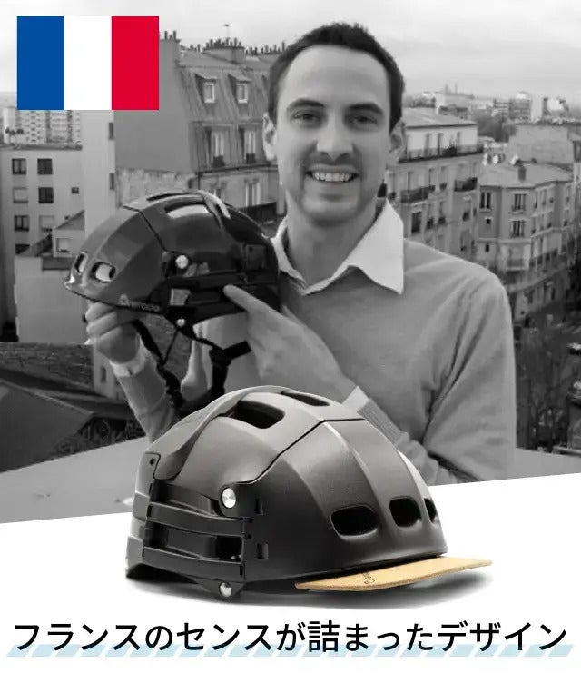 フランスのデザインと特許を取得した、折りたたみヘルメットです。