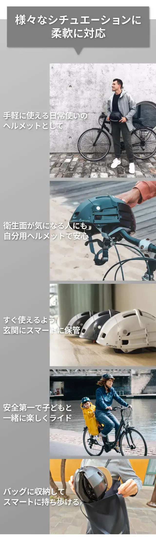 Overadeのプロダクトはすべて、“本当に使う人の目線”から設計されています。快適な装着感、確かな安全性、そして持ち運びやすさ。