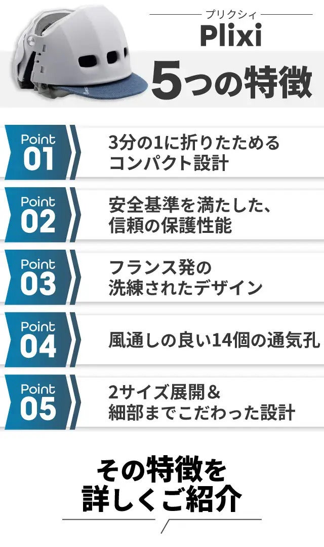 今回ご紹介する PLIXI(プリクシー) は、“折りたためる”という利便性に加えて、ヨーロッパの安全基準を満たす確かな性能、そしてパリ発らしい洗練されたデザイン性を兼ね備えた自転車ヘルメットです。