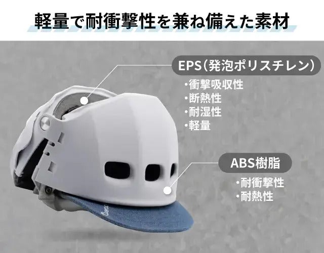 外部はABS樹脂(プラスチック樹脂)で、内部は衝撃吸収用のEPS(発泡ポリスチレン)を採用。