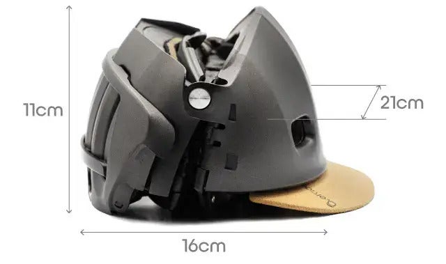 Plixiは、独自のヒンジ構造と最適化された折りたたみ技術により、ヘルメットのサイズを約3分の1にまでコンパクトに折りたたむことができます。