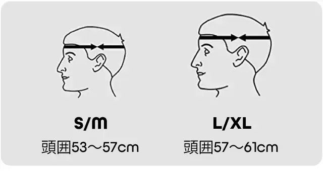 サイズ:S/M 頭囲53~57cm、L/XL 頭囲57~61cm