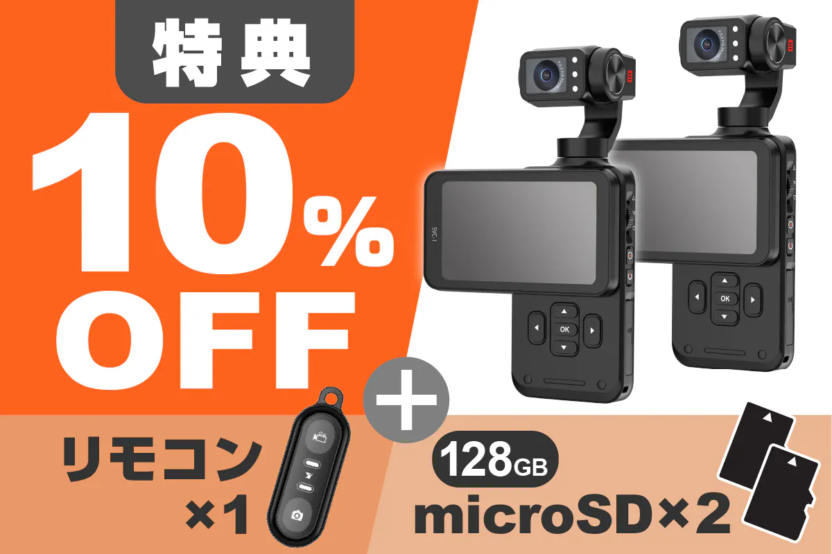 2台購入する方には10%OFF、さらにmicroSDカード128GBと専用リモコンも付きます!