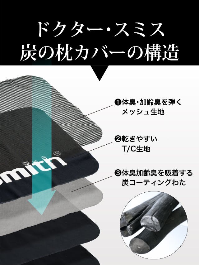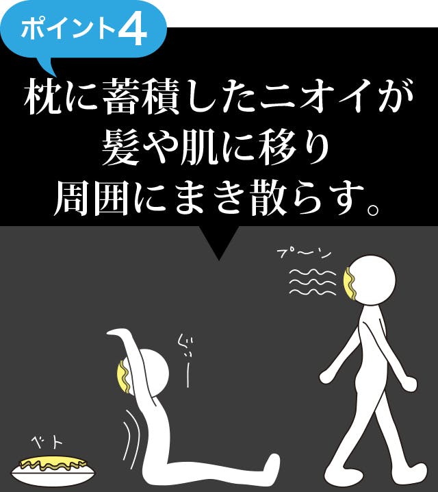 普段使っている枕カバーに体臭や加齢臭が蓄積していると、カバーのニオイが髪や頭に移り、外出先で不快なニオイを周囲に放ちます。ドクター・スミスの枕はこのような問題を解決するために開発しました。