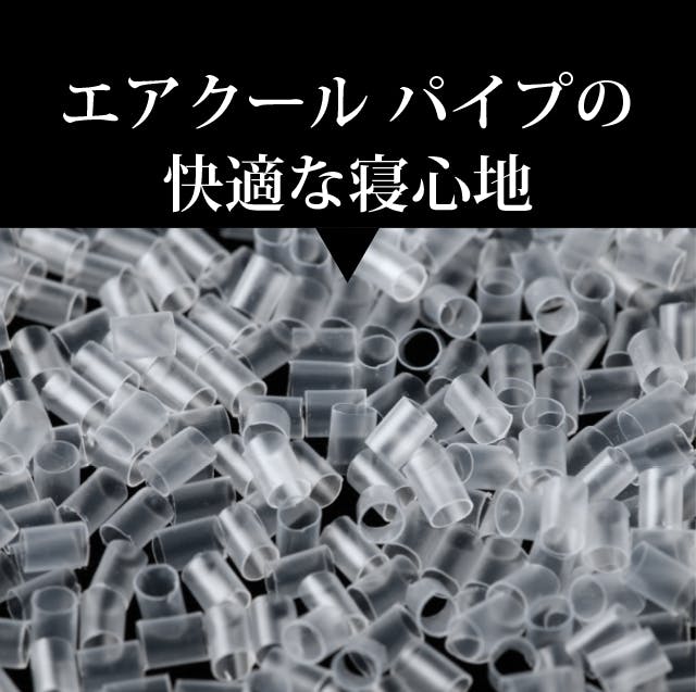 エアクール パイプは、従来のパイプよりも小さくて柔らかく、通気性にも優れています。また、手で中のパイプを寄せて瞬時に高さが変えられるなど自在に形が変えられる特徴があり、枕に適した素材と言えます。